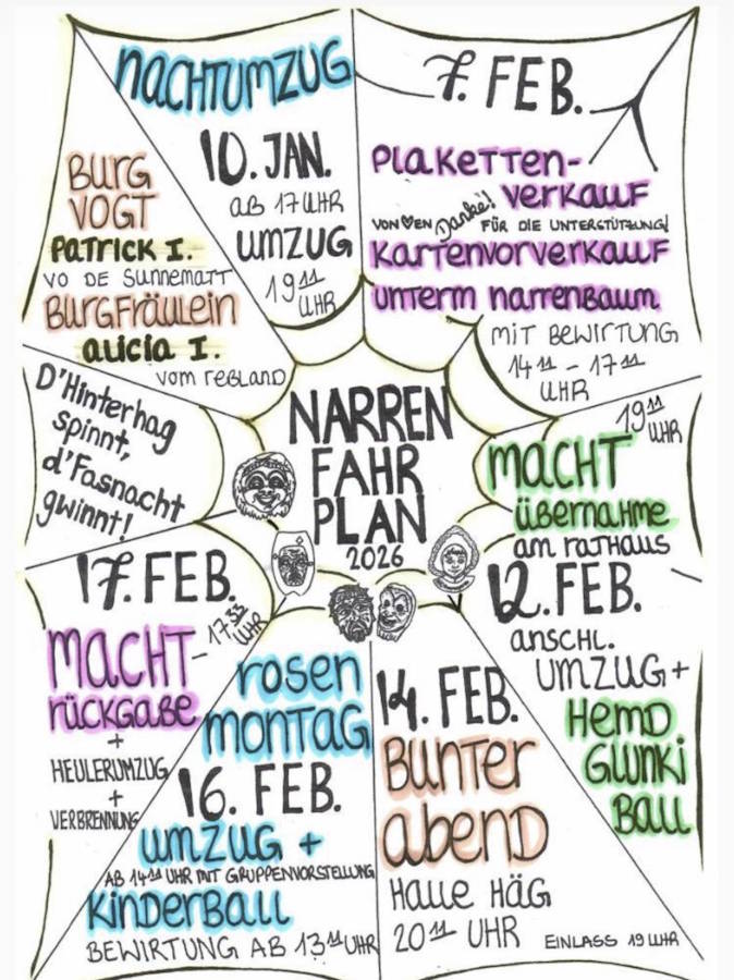 Narren beim Nachtumzug in Häg am 10. Januar 2026